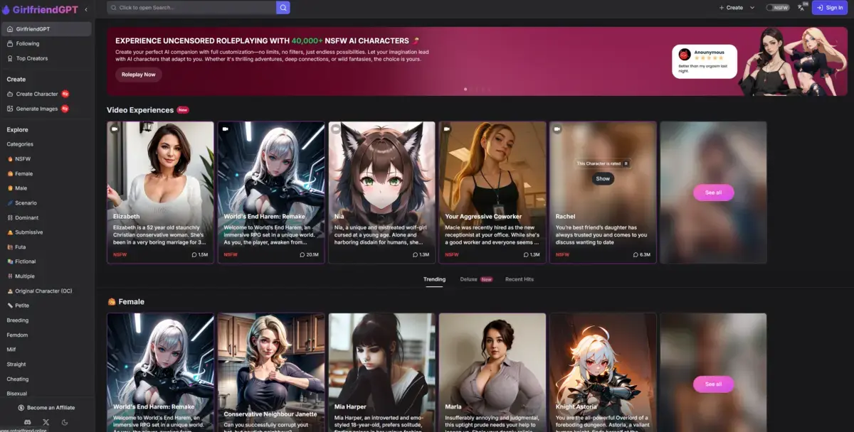 If you want unfiltered NSFW fast, this is it, just don't expect deep, therapy-style bonding.